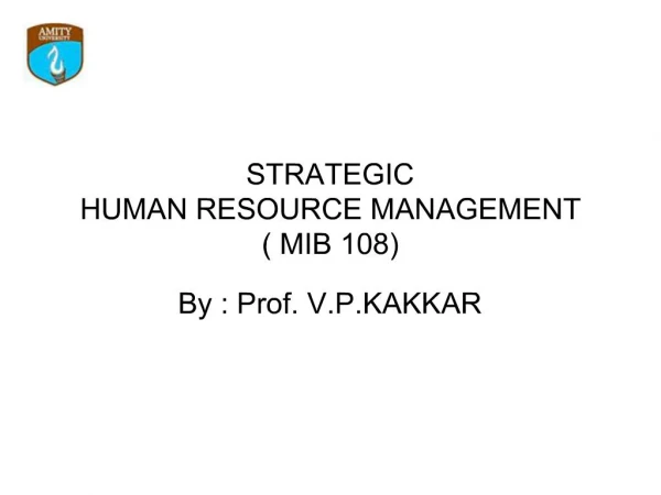 1. STRATEGIC HUMAN RESOURCE MANAGEMENT( MIB 108) By : Prof. V.P.KAKKAR