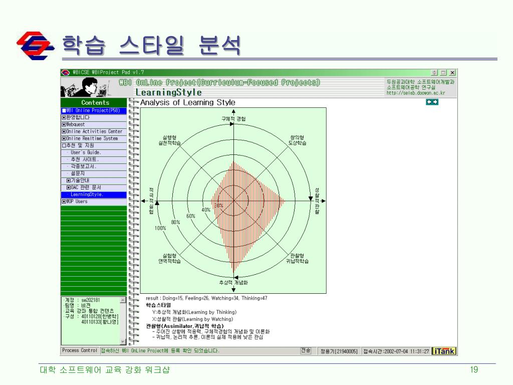 학습 스타일 분석 대학 소프트웨어 교육 강화 워크샵