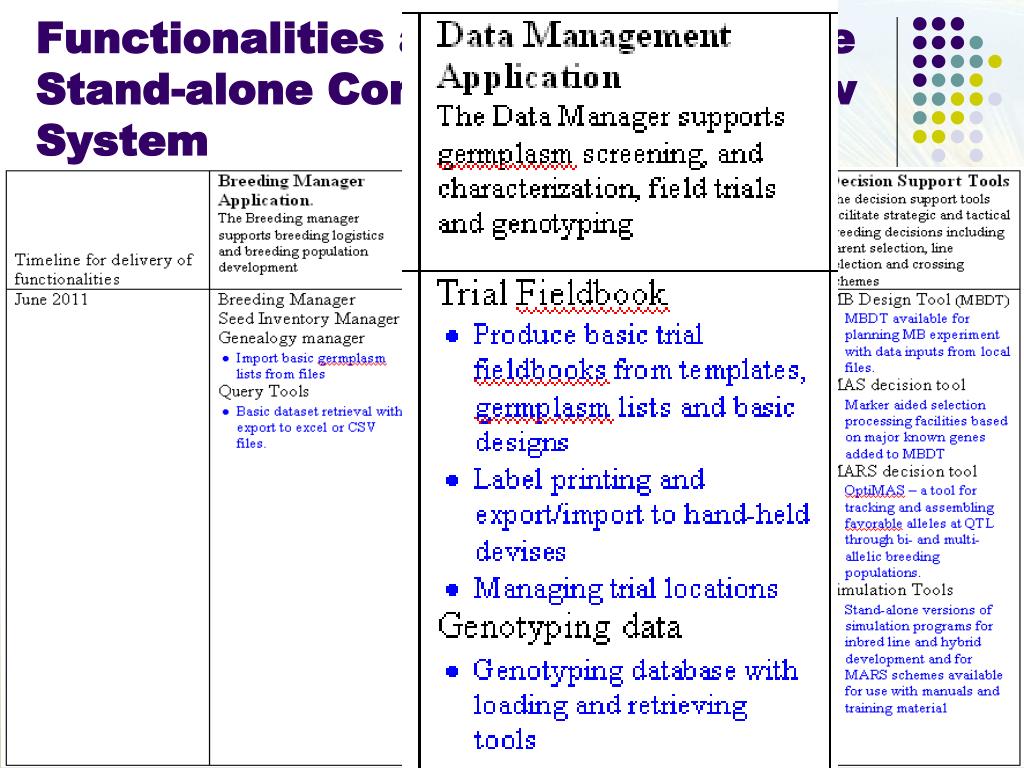 6. Stand-alone Beta Version – May 2011 To be tested by breeders at IBP WS - May