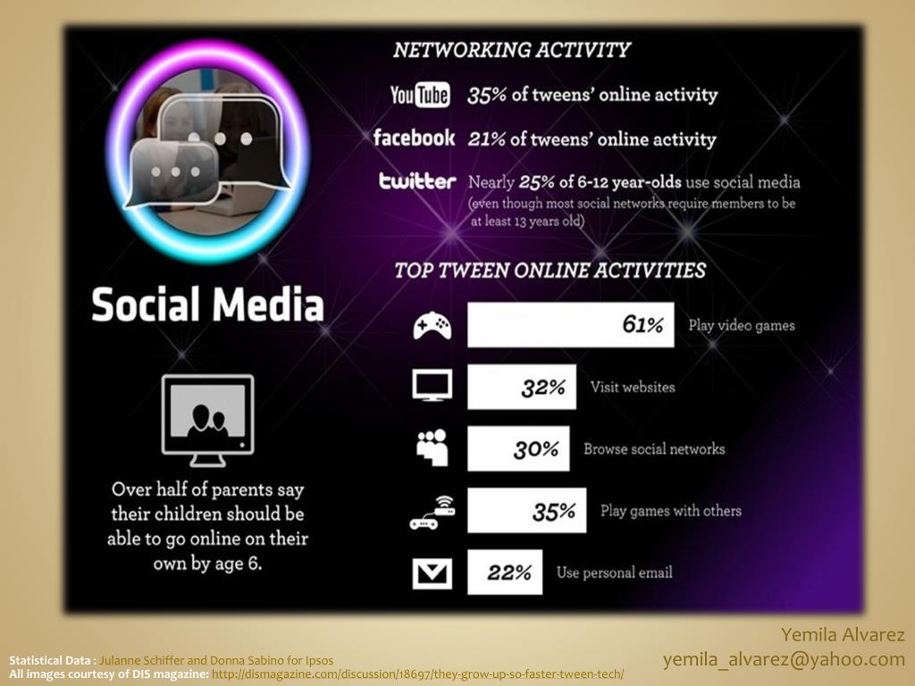 YemilaAlvarez yemila_alvarez@yahoo.com Statistical Data : Julanne Schiffer and Donna Sabino for Ipsos All images courtesy of DIS magazine: http://dismagazine.com/discussion/18697/they-grow-up-so-faster-tween-tech/