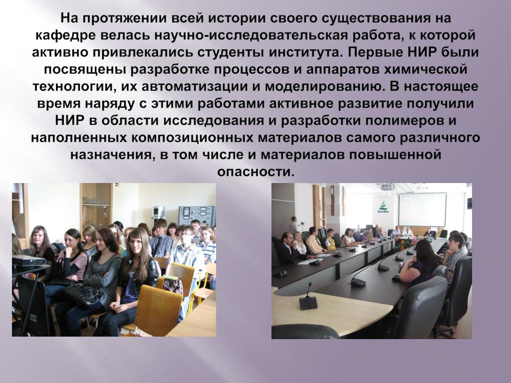 Уже на протяжении 4-х лет на кафедре организуется и проводится Всероссийская научно-практическая конференция «Прикладные аспекты химической технологии, полимерных материалов и наносистем» (Полимер), которая с каждым годом расширяет географию своих участников и тематические разделы.