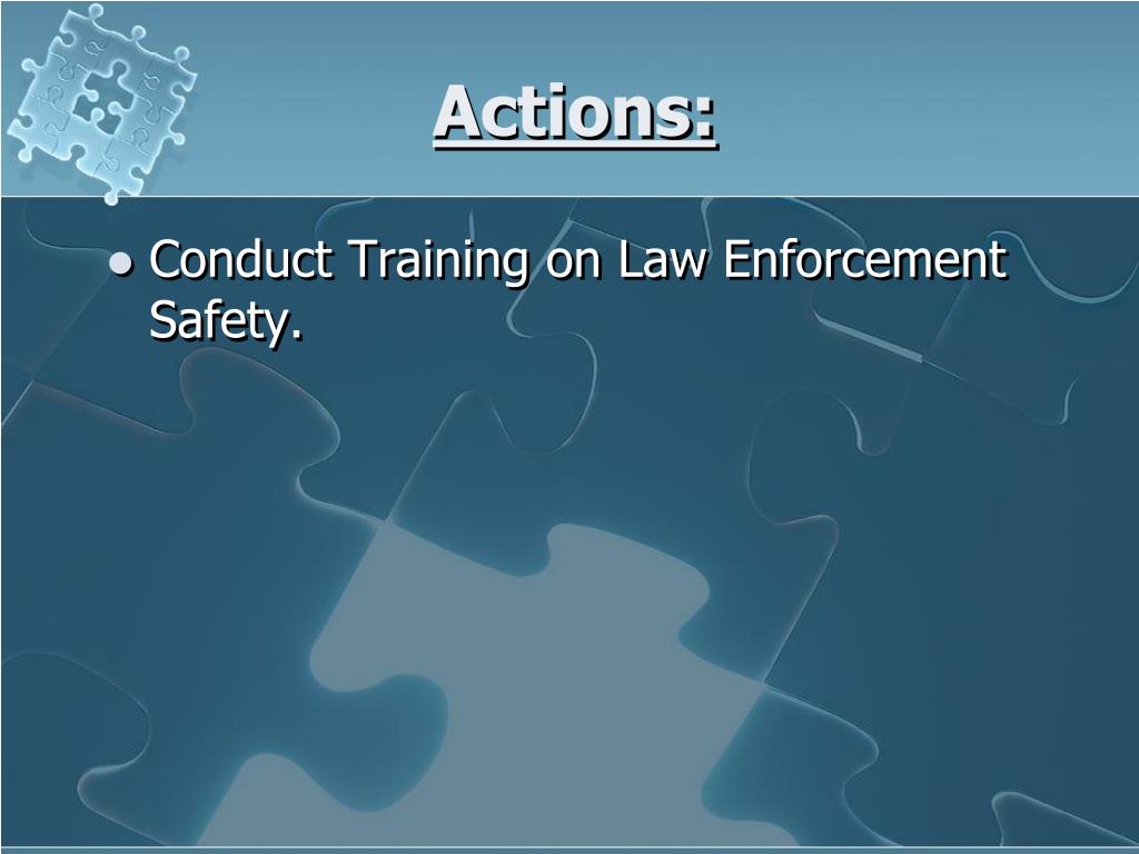 Law Enforcement Road Safety. References: Battalion SOP. Actions:. Conduct Training on Law Enforcement Safety. Conditions:. Given a group of Military Police Soldiers, a classroom environment, and note-taking materials. Standards:.
