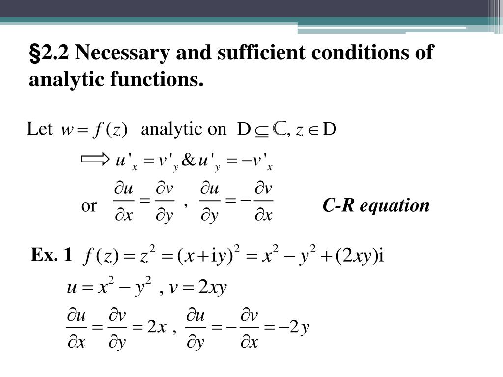 §2.2 Necessary and sufficient conditions of analytic functions. Let analytic on or C-R equation Ex. 1