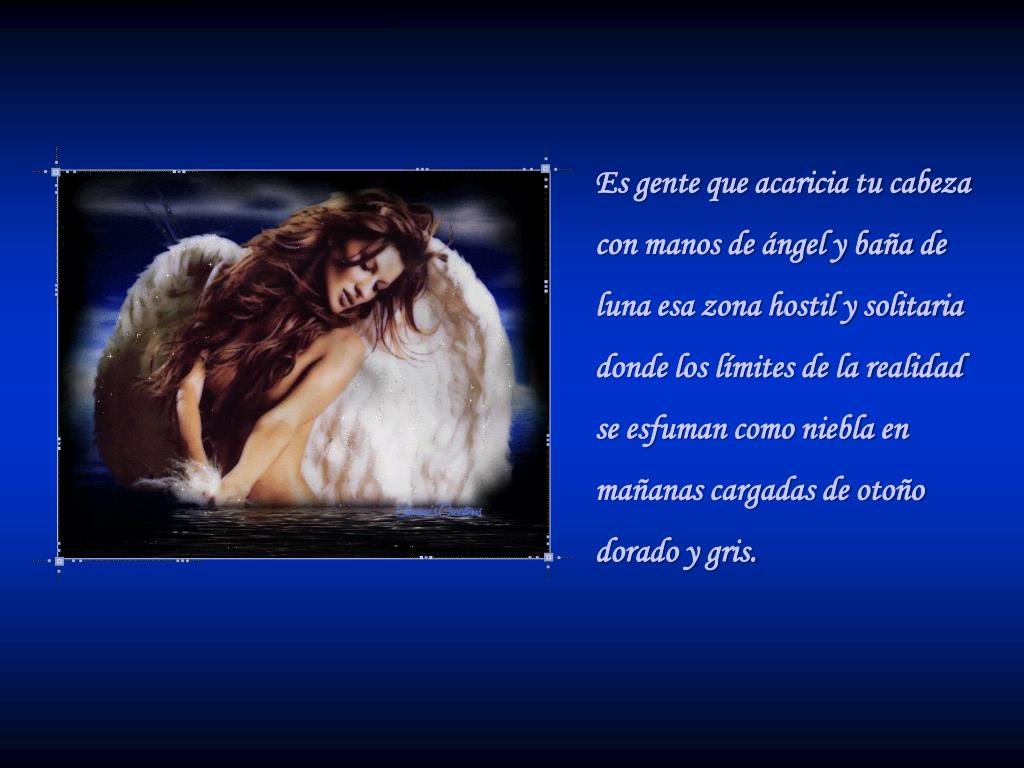 Es gente que acaricia tu cabeza con manos de ángel y baña de luna esa zona hostil y solitaria donde los límites de la realidad se esfuman como niebla en mañanas cargadas de otoño dorado y gris.