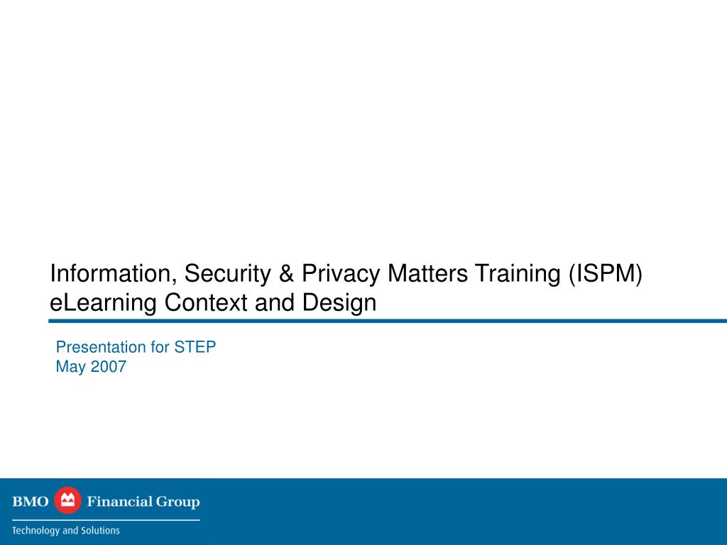 Information, Security & Privacy Matters Training (ISPM)eLearning Context and Design • Presentation for STEP • May 2007