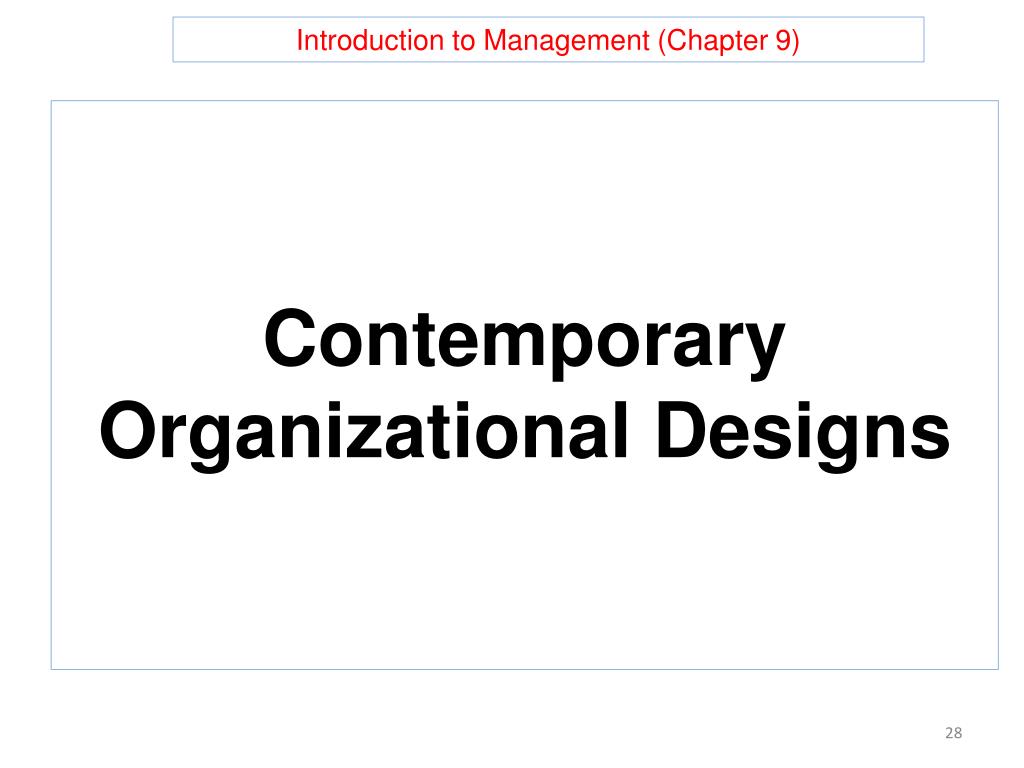 Introduction to Management (Chapter 9) Contemporary Organizational Designs