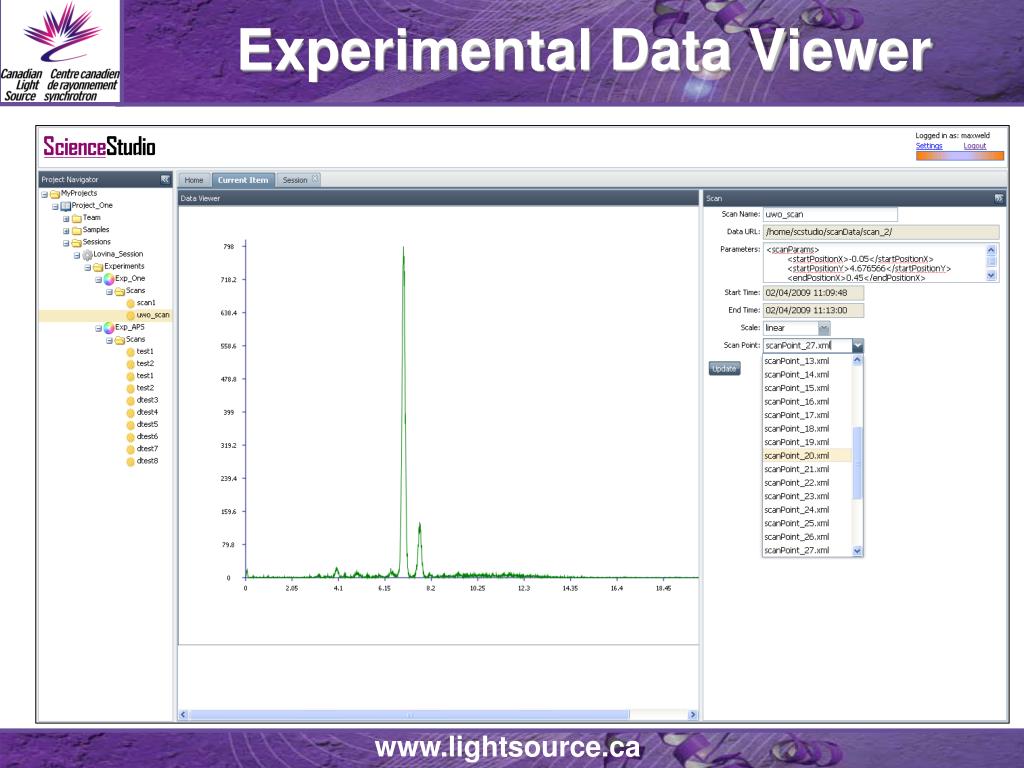 Experimental Data Storage Web Application Beamline Control Module VESPERS HTTP JMS CA SAN DB • Experimental data is stored at the CLS. • Common directory structure shared with other beamlines. • A large data storage facility is now operational at the University of Saskatchewan as part of WestGrid.