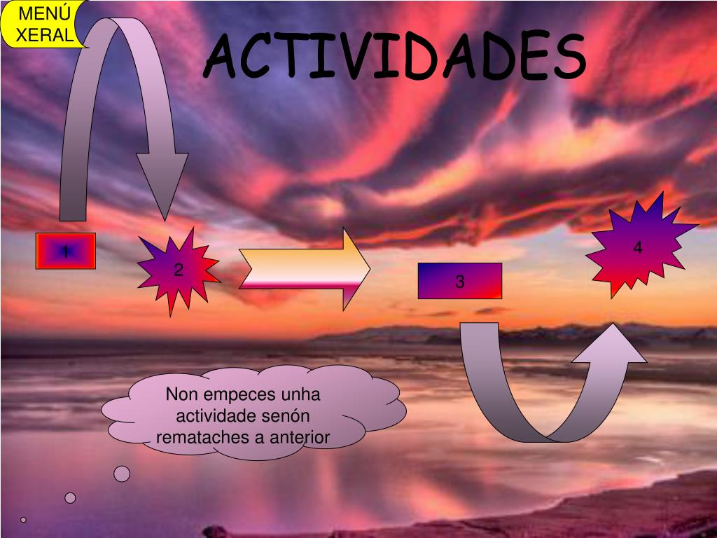 MENÚ XERAL ACTIVIDADES 4 2 1 3 Non empeces unha actividade senón remataches a anterior