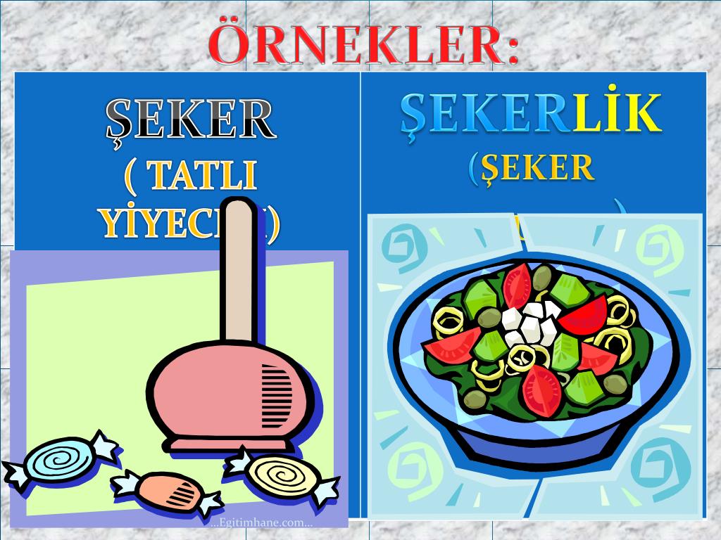 ÖRNEKLER: ŞEKERLİK (ŞEKER KONULAN) ŞEKER ( TATLI YİYECEK) …Egitimhane.com…