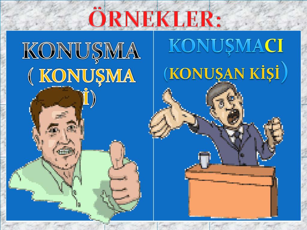 ÖRNEKLER: KONUŞMACI (KONUŞAN KİŞİ) KONUŞMA ( KONUŞMA İŞİ) …Egitimhane.com…