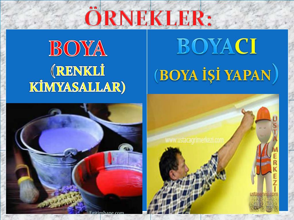 ÖRNEKLER: BOYACI (BOYA İŞİ YAPAN) BOYA (RENKLİ KİMYASALLAR) …Egitimhane.com…