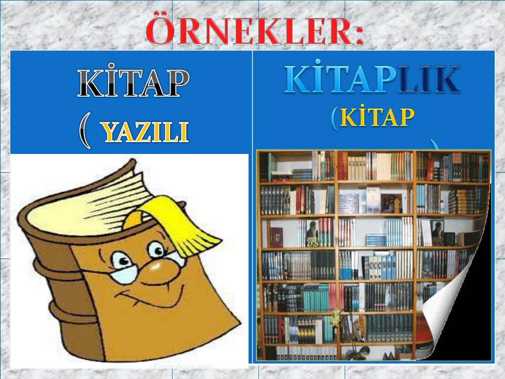ÖRNEKLER: KİTAPLIK (KİTAP KONULAN) KİTAP ( YAZILI KAYNAK) …Egitimhane.com…