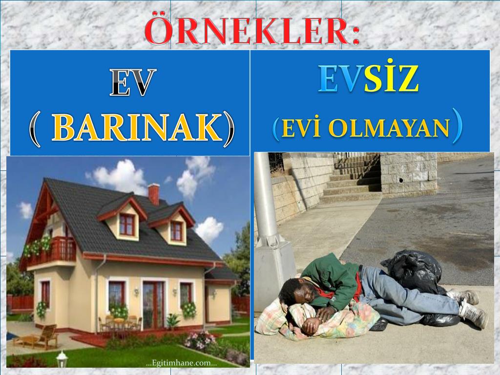 ÖRNEKLER: EVSİZ (EVİ OLMAYAN) EV ( BARINAK) …Egitimhane.com…