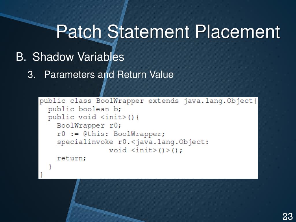 Shadow Variables 3. Parameters and Return Value Patch Statement Placement