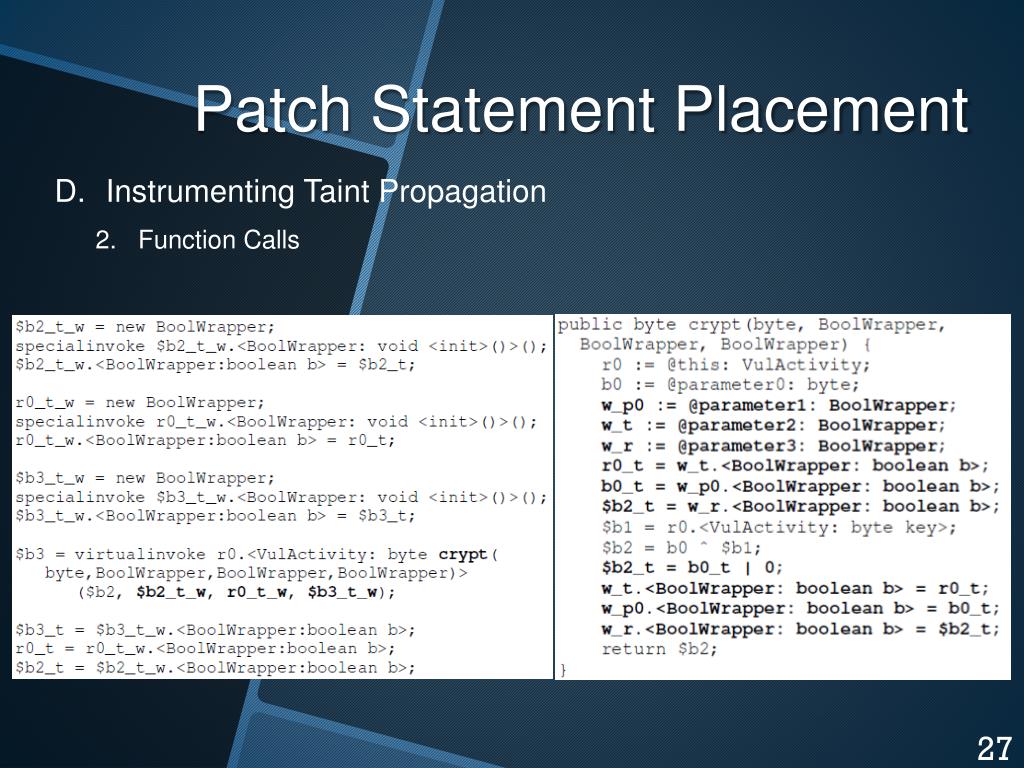 Instrumenting Taint Propagation 2. Function Calls Patch Statement Placement
