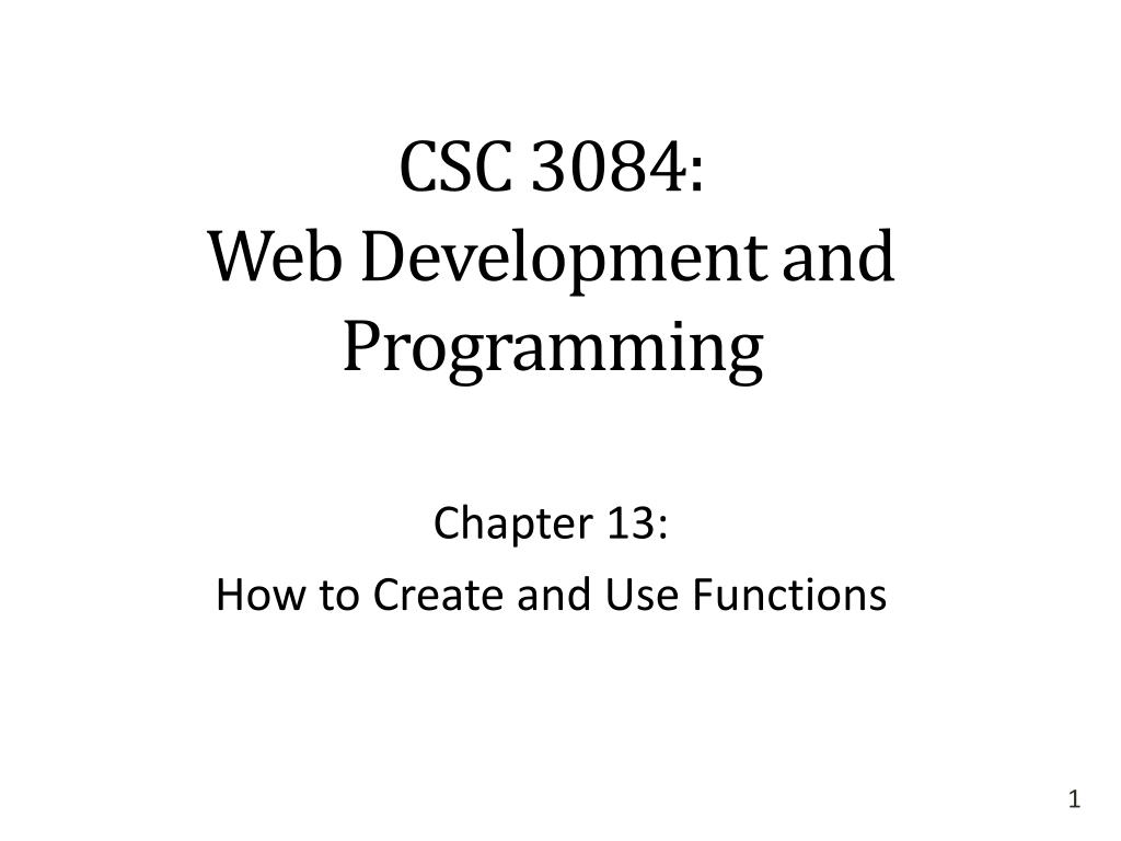 CSC 3084:Web Development and Programming Chapter 13: How to Create and Use Functions