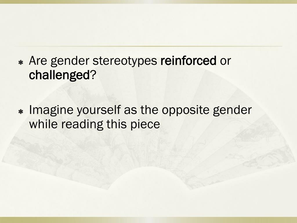 Are gender stereotypes reinforced or challenged? Imagine yourself as the opposite gender while reading this piece