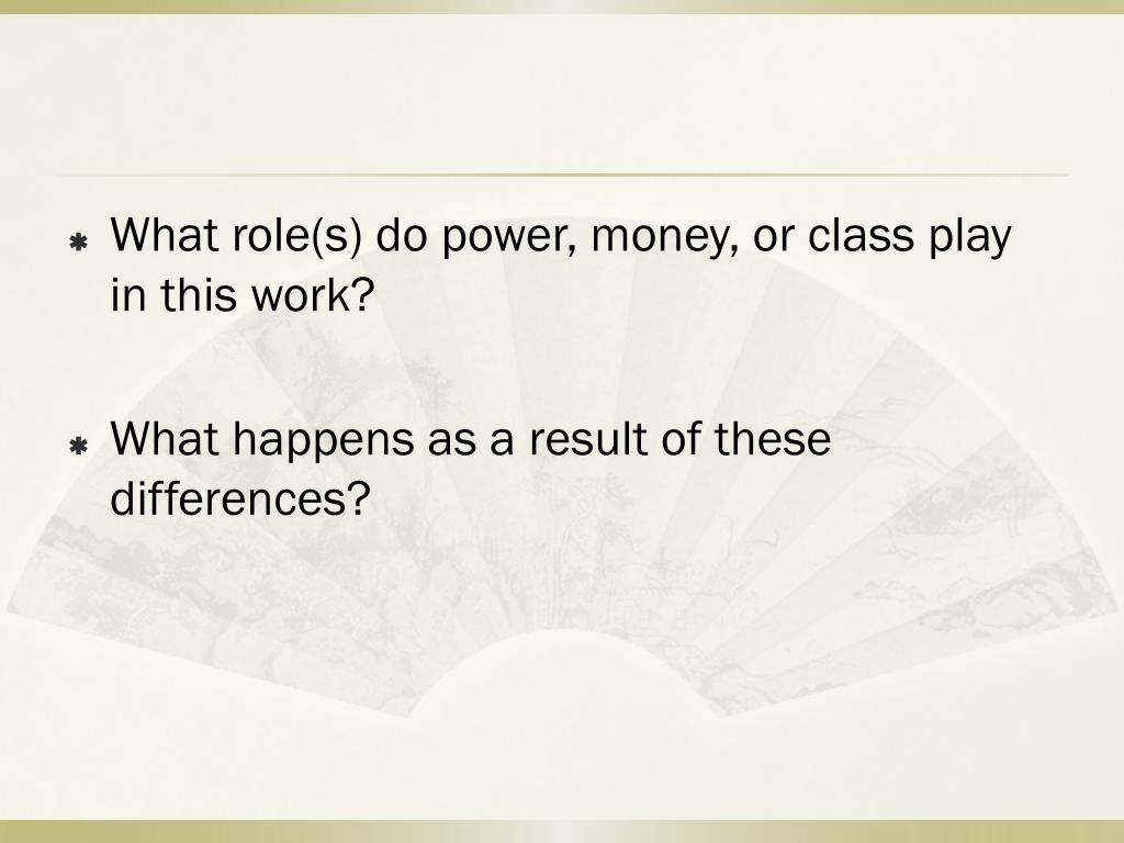 What role(s) do power, money, or class play in this work? What happens as a result of these differences?