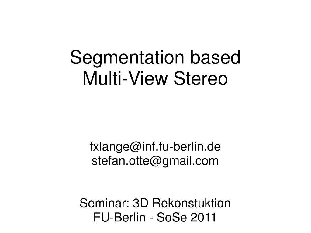 Segmentation basedMulti-View Stereo fxlange@inf.fu-berlin.de stefan.otte@gmail.com Seminar: 3D Rekonstuktion FU-Berlin - SoSe 2011