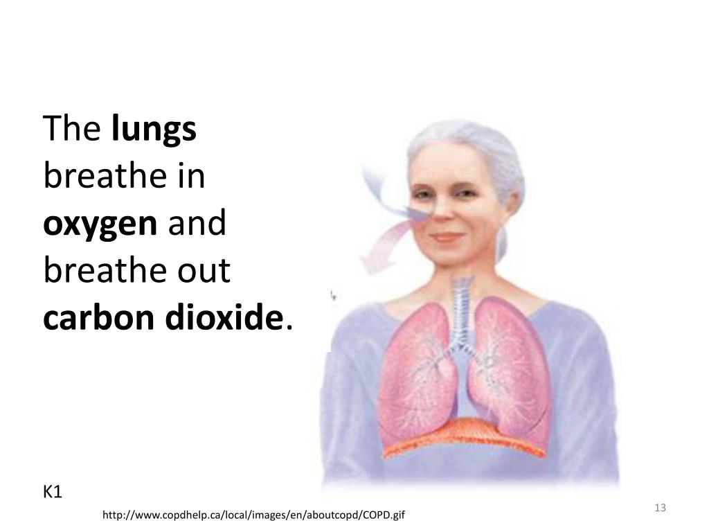 The lungs breathe in oxygen and breathe out carbon dioxide. K1 http://www.copdhelp.ca/local/images/en/aboutcopd/COPD.gif