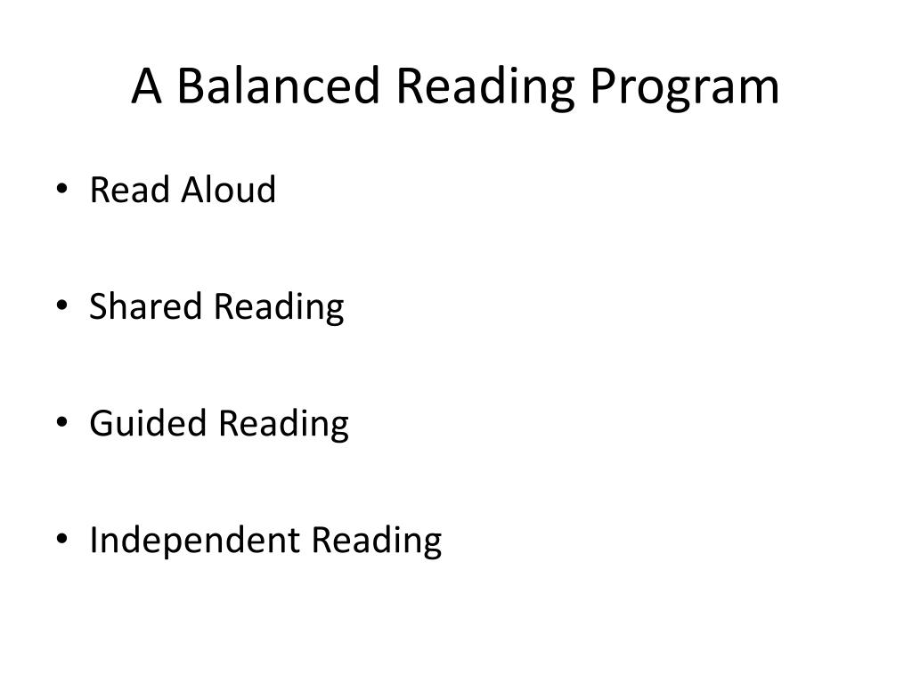 A Balanced Reading Program • Read Aloud • Shared Reading • Guided Reading • Independent Reading