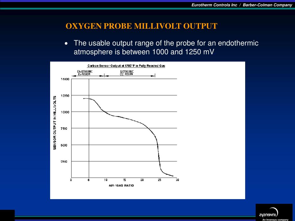 OXYGEN PROBE MILLIVOLT OUTPUT • The usable output range of the probe for an endothermic atmosphere is between 1000 and 1250 mV.