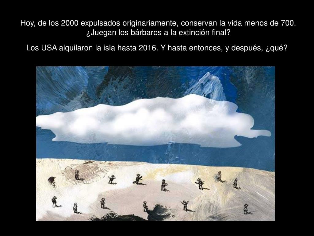 Hoy, de los 2000 expulsados originariamente, conservan la vida menos de 700. ¿Juegan los bárbaros a la extinción final? Los USA alquilaron la isla hasta 2016. Y hasta entonces, y después, ¿qué?