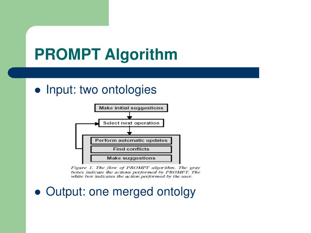 PROMPT Algorithm • Input: two ontologies • Output: one merged ontolgy