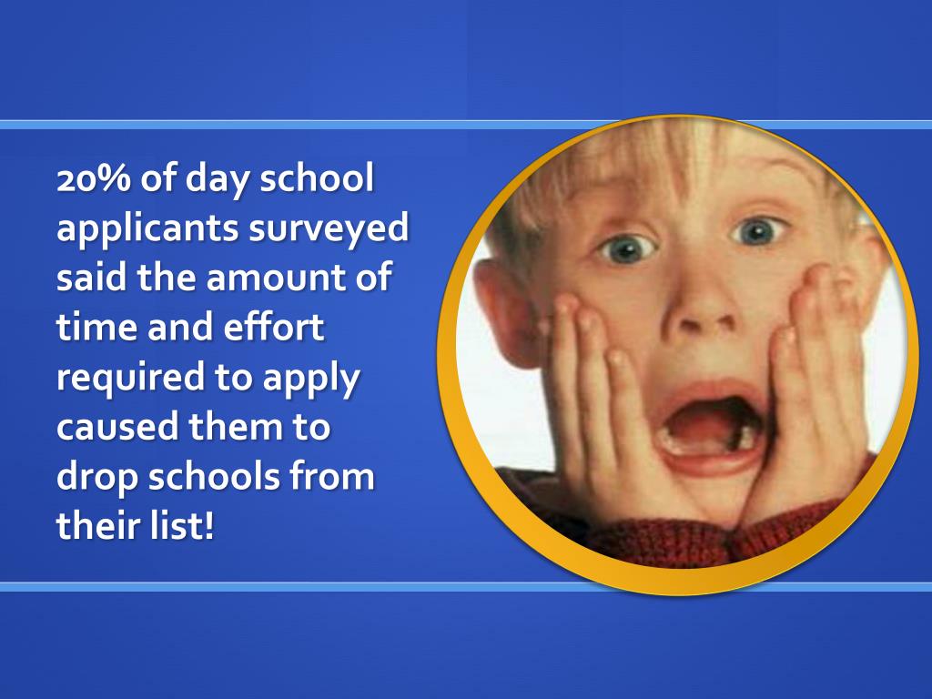 20% of day school applicants surveyed said the amount of time and effort required to apply caused them to drop schools from their list!
