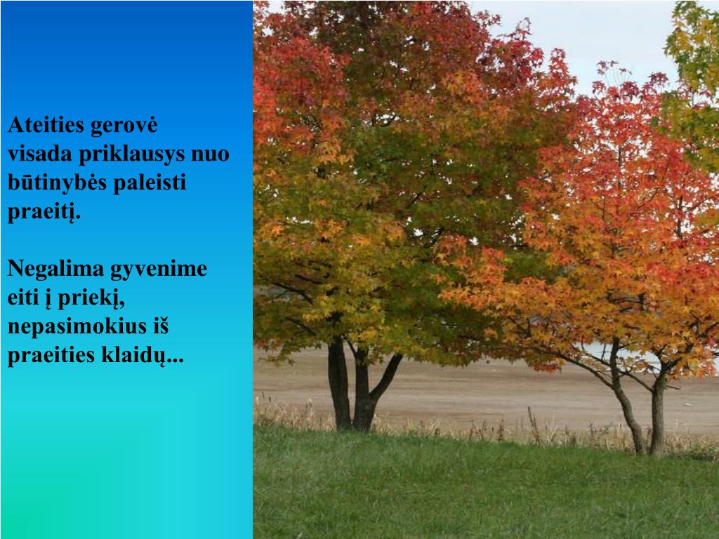 Ateities gerovė visada priklausys nuo būtinybės paleisti praeitį. Negalima gyvenime eiti į priekį, nepasimokius iš praeities klaidų...