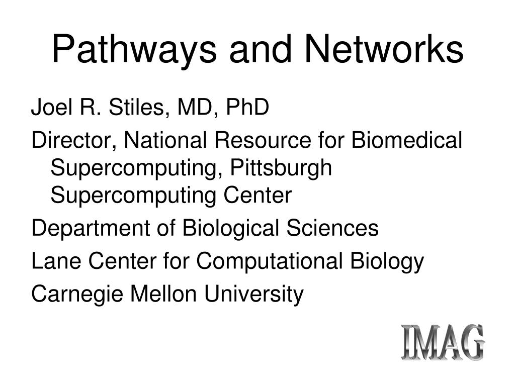 Pathways and Networks. Joel R. Stiles, MD, PhD Overview; Algorithms, Software and Hardware Issues Ronald N. Germain, MD, PhD Modeling and Simulation in Immunology Timothy J. Kinsella, MD Systems Biology, Cancer Therapeutics, and Personalized Medicine. IMAG. Pathways and Networks.