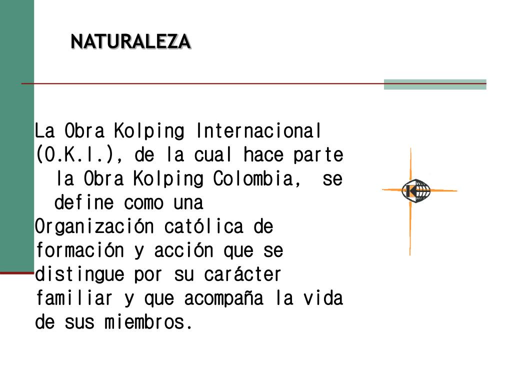 NATURALEZA La Obra Kolping Internacional (O.K.I.), de la cual hace parte la Obra Kolping Colombia, se define como una Organización católica de formación y acción que se distingue por su carácter familiar y que acompaña la vida de sus miembros.