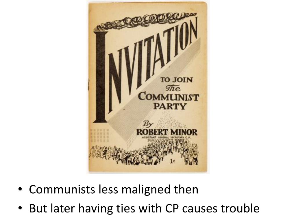 Communists less maligned then • But later having ties with CP causes trouble