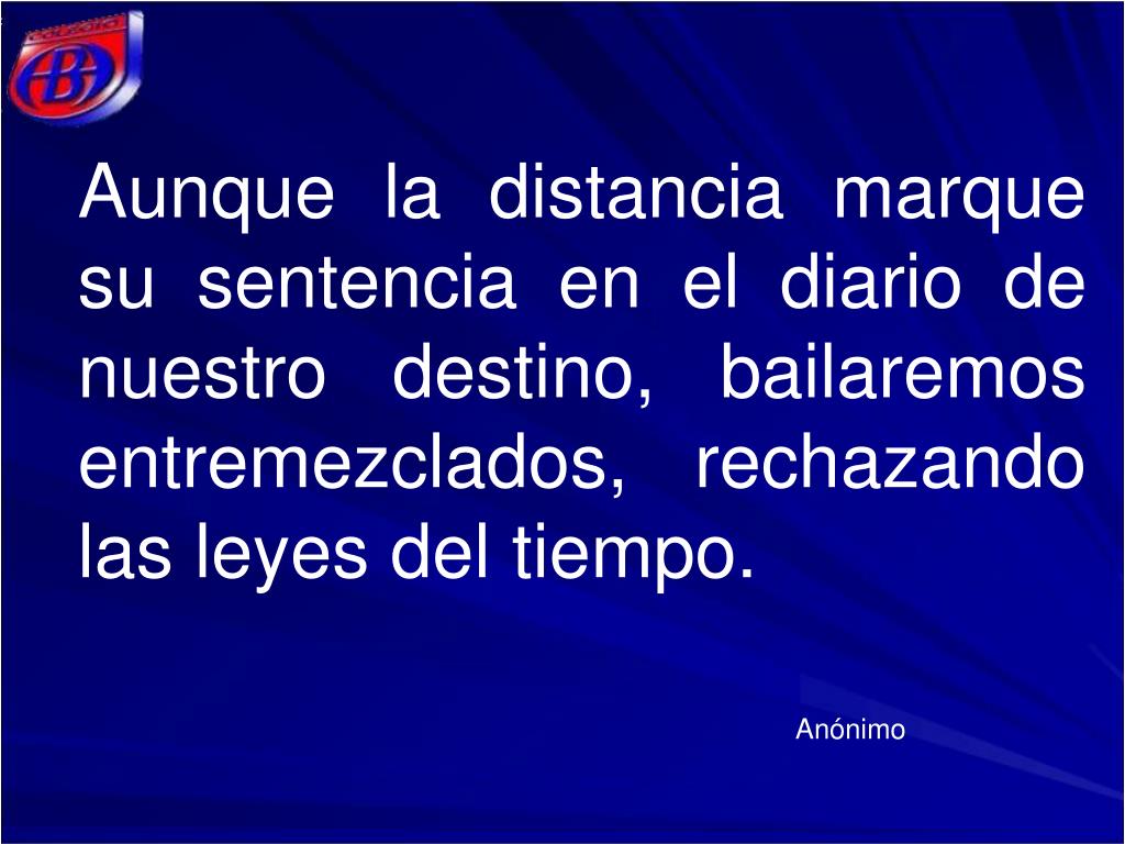 Aunque la distancia marque su sentencia en el diario de nuestro destino, bailaremos entremezclados, rechazando las leyes del tiempo. Anónimo