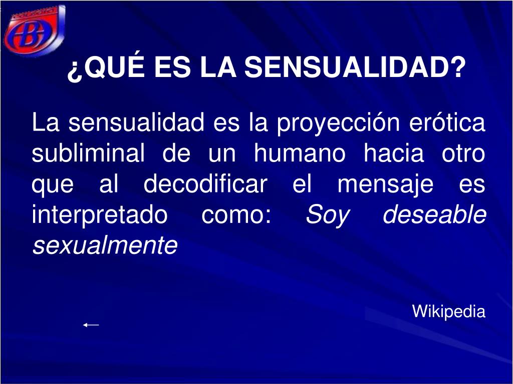 ¿QUÉ ES LA SENSUALIDAD? La sensualidad es la proyección erótica subliminal de un humano hacia otro que al decodificar el mensaje es interpretado como: Soy deseable sexualmente Wikipedia