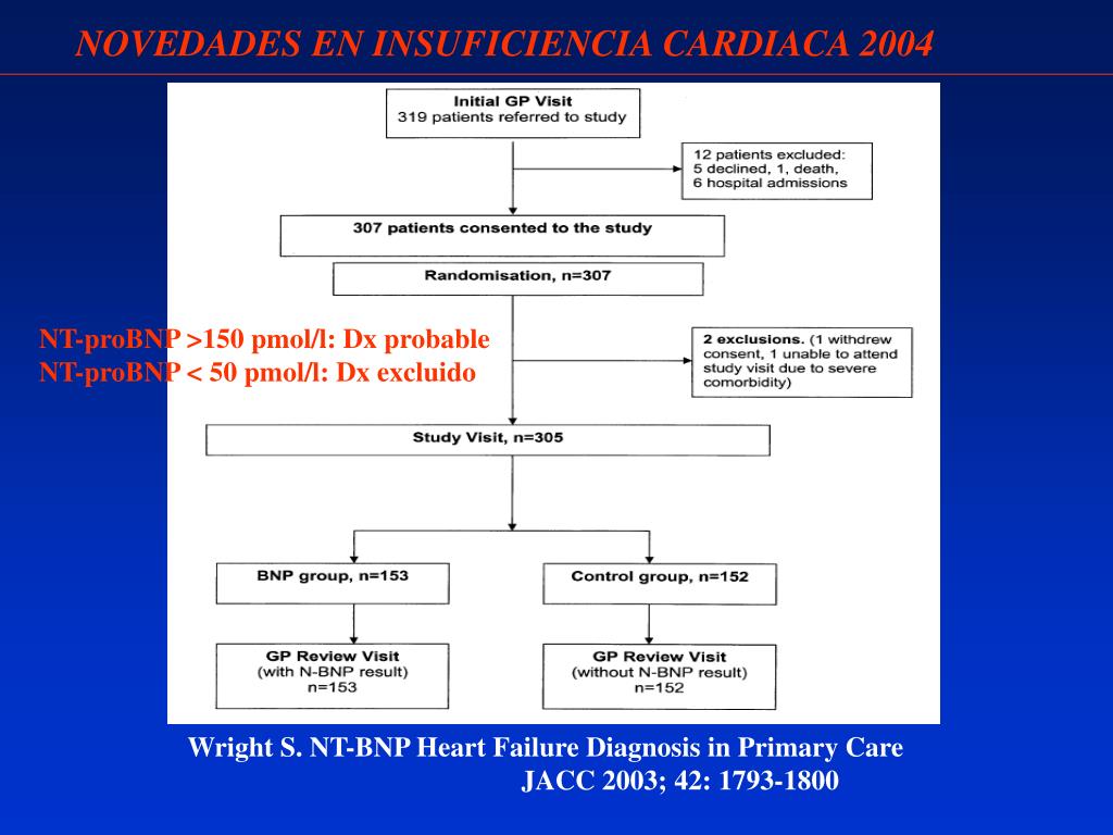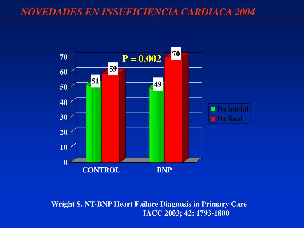 NOVEDADES EN INSUFICIENCIA CARDIACA 2004 P = 0.002 Wright S. NT-BNP Heart Failure Diagnosis in Primary Care JACC 2003; 42: 1793-1800