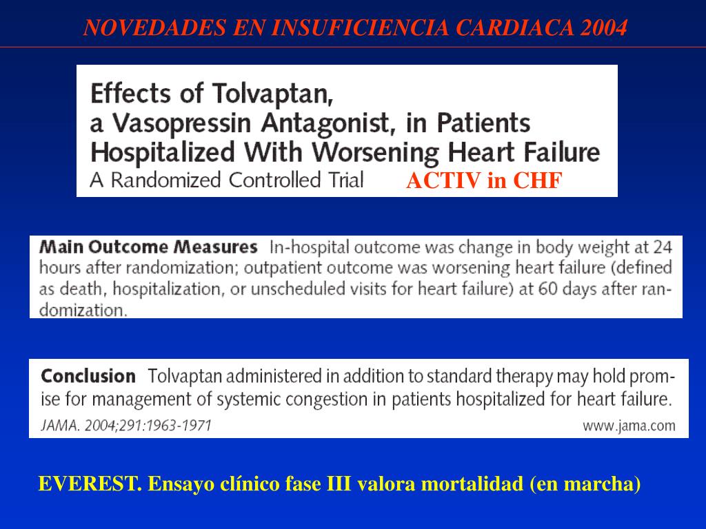 NOVEDADES EN INSUFICIENCIA CARDIACA 2004 ACTIV in CHF EVEREST. Ensayo clínico fase III valora mortalidad (en marcha)