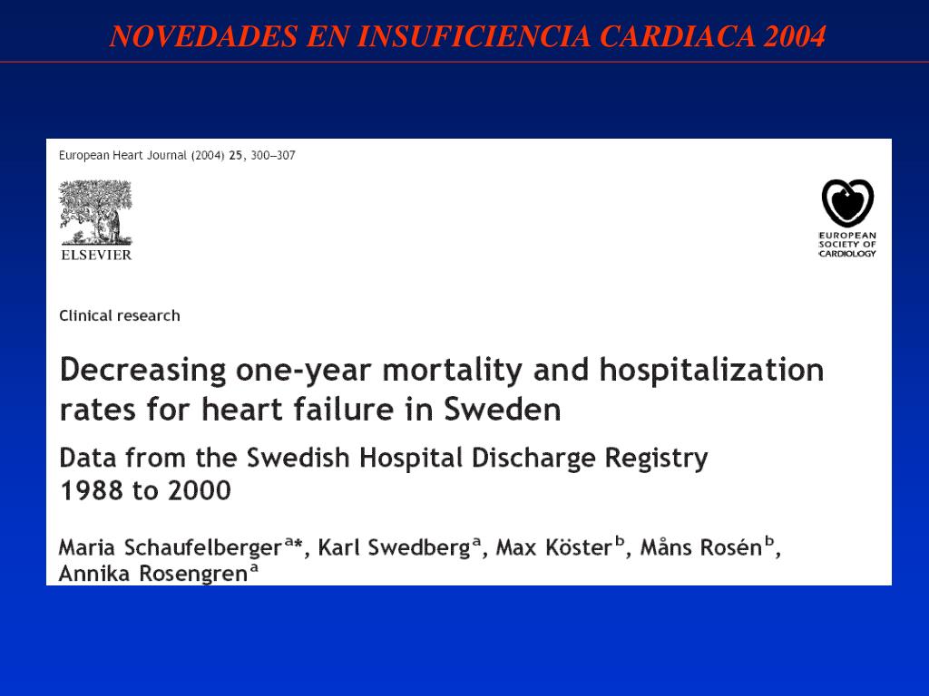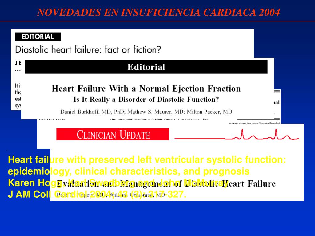 , Heart failure with preserved left ventricular systolic function: epidemiology, clinical characteristics, and prognosis Karen Hogg, Karl Swedberg and John McMurray J AM Coll Cardiol 2004; 43 (3): 317-327. NOVEDADES EN INSUFICIENCIA CARDIACA 2004