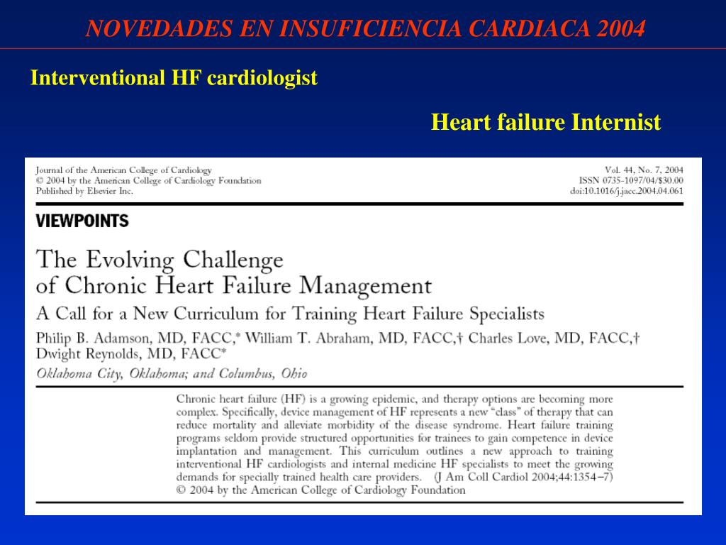 NOVEDADES EN INSUFICIENCIA CARDIACA 2004 Interventional HF cardiologist Heart failure Internist