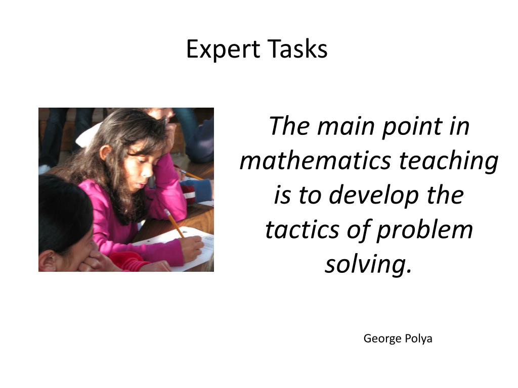 Expert Tasks The main point in mathematics teaching is to develop the tactics of problem solving. George Polya