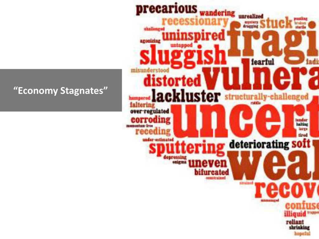 Washington County Economy. The Economy. Fact and fiction. “Economy Stagnates”. GDP Growing at a moderate rate. United States Real Gross Domestic Product. Billions of Chained Dollars. “Hiring Grinds to a Halt”. Jobs are Growing. United States Seasonally Adjusted Nonfarm Jobs.