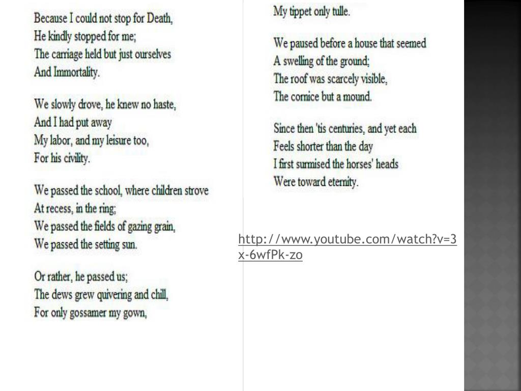 Influences in Poetry from Youth • Experienced some hardship during childhood. • Deaths of friends and relatives, including her young cousin Sophia Holland, prompted questions about deathand immortality. • “It seemed to me I should die too if I could not be permitted to watch over her or even look at her face."