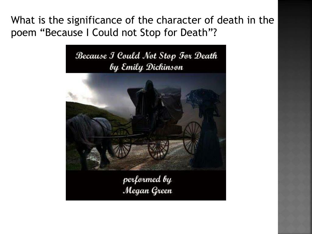 What is the significance of the character of death in the poem “Because I Could not Stop for Death”?