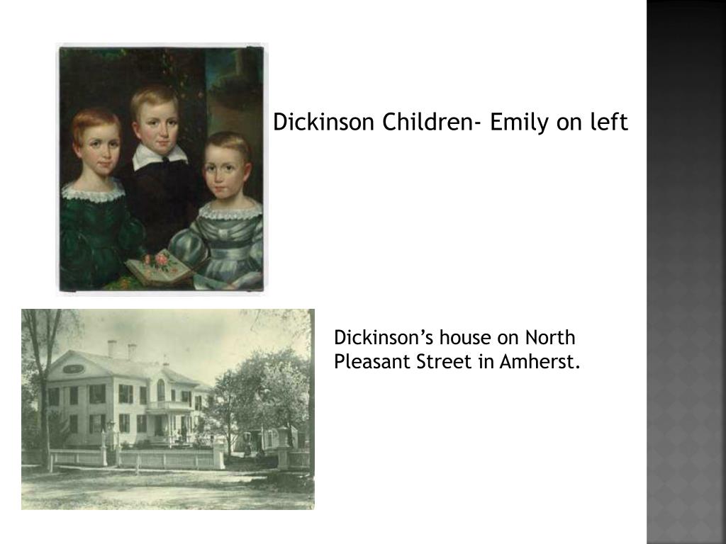 Dickinson Children- Emily on left Dickinson’s house on North Pleasant Street in Amherst.