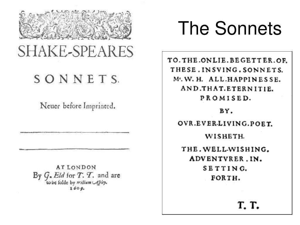 Shakespeare’s sonnets III • Order of the sonnets: • 1-126: addressed to a young man (W.H.), urning him to marry and beget children • 127-152: addressed to a ‘Dark Lady’, describing a love triangle betwen two men and a woman • 153-154: free adaptations of two classic poems