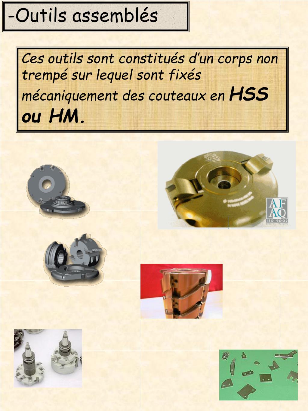 -Outils assemblés Ces outils sont constitués d’un corps non trempé sur lequel sont fixés mécaniquement des couteaux en HSS ou HM.