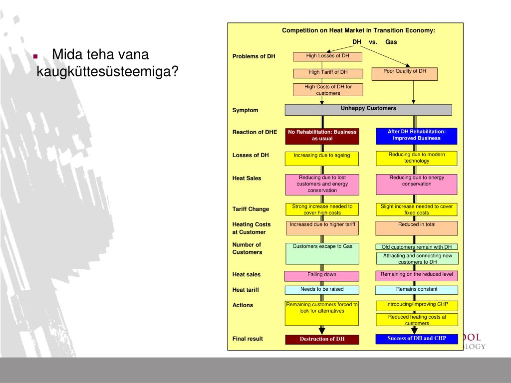 Kokkuvõte: • Koostootmise rajamine on võimalik vaatamata keerulisele seadusandlusele. • Täpsustamist vajavad ja keerukaks teevad nn. võrguga liitmise tingimused, võrgus töötamise põhimõtted ning bilansivastutusega seonduv. • Kui koostootmisjaam on hoolduses või remondis, millise hinnaga ostetakse elekter siis võrgust, milliseks kujuneb nn. reservihind? • Samas, kui koostootmise (väiketootja) kohta võetakse vastu seadusparandus §75 lg3 ehk teatava eristaatuse andmine, siis millise hinnaga pannakse valdav tootja (kes on ikka sisuliselt täna Eesti Energia) ostma elektrit?