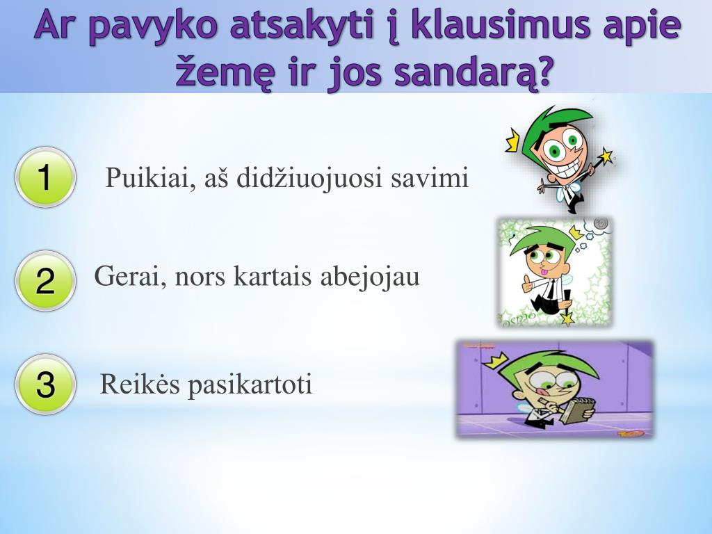 Ar pavyko atsakyti į klausimus apie žemę ir jos sandarą? Puikiai, aš didžiuojuosi savimi Gerai,nors kartais abejojau Reikės pasikartoti