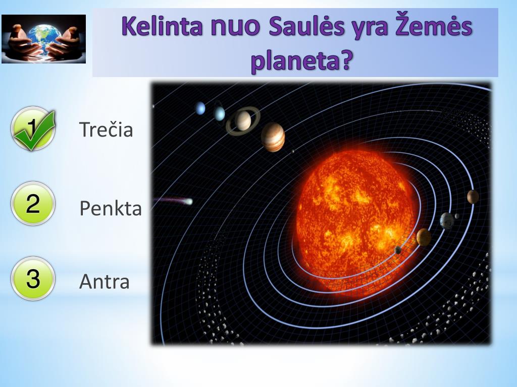 Kelinta nuoSaulės yra Žemės planeta? Trečia Penkta Antra