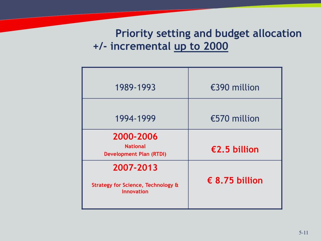 Priority setting and budget allocation +/- incremental up to 2000